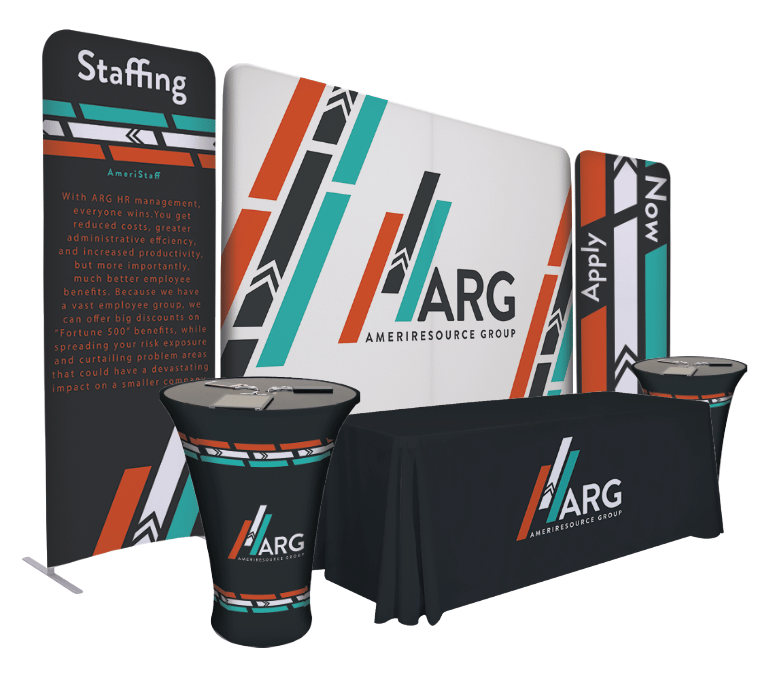 The client was looking for a grouping idea available at Showdown Displays. I created this design using the customers website as inspiration. The client only sent me the logos. This was the first design of many that I did for this client. This was created in Illustrator to template, and the mock up was done in Photoshop.