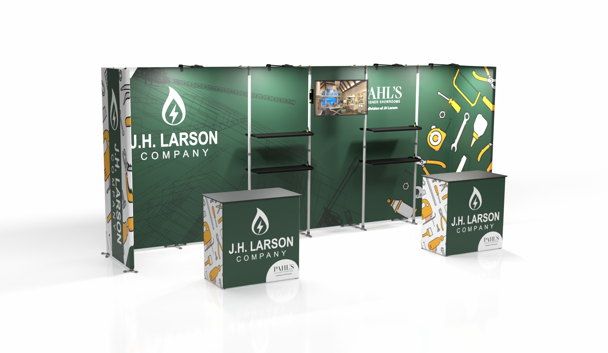 The client was looking for a design for this grouping available at Showdown Displays. I created the design using the customers website as inspiration. The client only sent me the logos. This design was created in Illustrator to template. The models were created in blender and staged in Substance Stager.